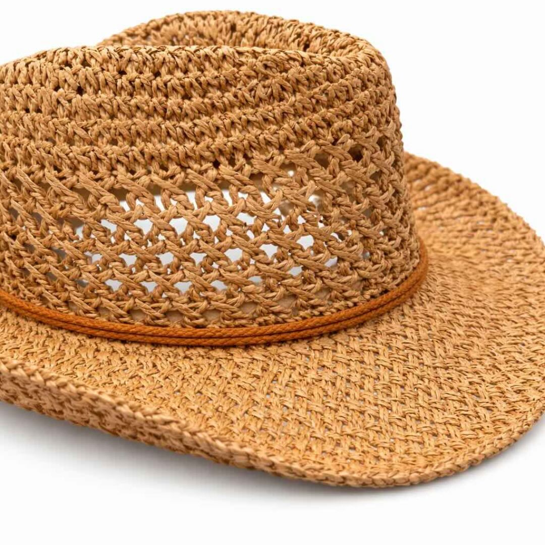 Cappello cowboy estivo dal design traforato, leggero e traspirante, pensato per accompagnarti nelle giornate più calde con stile e comfort.